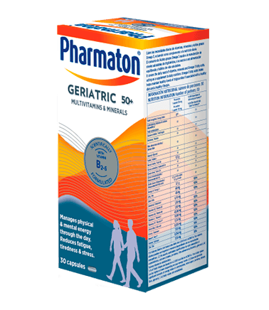 - Pharmaton Geriatric 50+ contribuye a mejorar la energía física y mental a lo largo del día.1